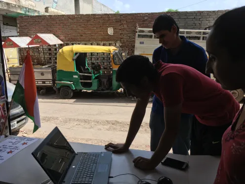 There are many, of course, who push past their resistance, their jhijhak. They enter through (what might seem rather cryptic from the street) a thick black curtain. They are now inside the studio, lined with neon green ‘chroma’ sheets. We explain how things work, where they will deliver their performance, where the cameras will be. We chat a bit about what they want to perform and how their recording might potentially be edited with different backgrounds to suit their performance. There are those who see this space as a resource to help them fulfil their ‘Khirkee Idol’ dreams, or at least get a music video out of it. There are others who are excited to unleash their newly minted rap verses and see the studio as a testing ground. Then there are those who walk in without an idea of what they want to perform, simply there because we have welcomed them warmly.